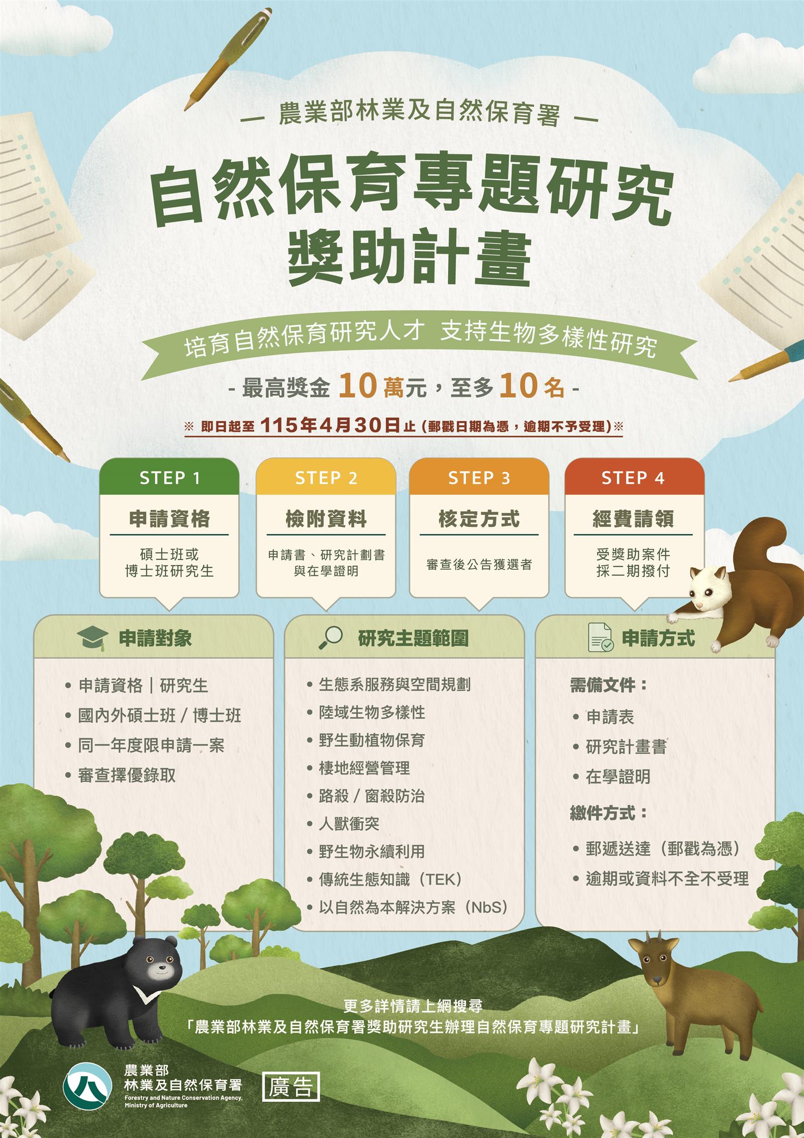 農業部林業及自然保育署獎助研究生辦理自然保育 專題研究計畫作業要點